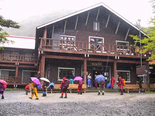 | 徳沢園を通過 雨です | 槍沢ロッジを暗いうちに出発 長い長い行程になります |