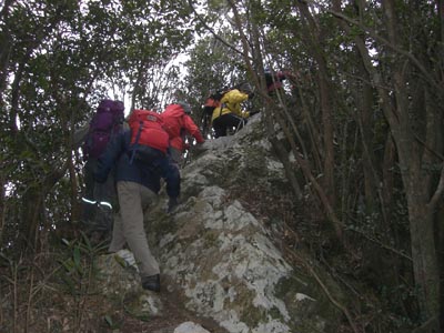 | アイゼンの装着 | 妙見神社で合流 |