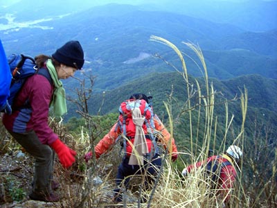 | 慎重に下ります | 普賢岳山頂 |