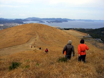 | 日本の最西端地五島、期待に胸膨らませて乗船 今回は五島出身のリーダーの計らいで二人のガイドさんが助っ人です(妹さん)。 七ツ岳はピークがその通りアップダウン、やせ尾根を慎重に歩く 山頂では大海原の眺望は素晴らしいものがありました。 2日目 父カ岳はガイドブックに載っていない登山口から入り、どこを見ても椿・椿林 頂上への標高差100mは急登で。 鹿の遠音に心ふるわせ、下山では2頭の鹿に出会えました。 午後から鬼岳、ここはリーダーの遠足コース。 最西端の大瀬崎灯台・教会・遣唐使船の寄泊地・椿園・武家屋敷跡など等、下五島の観光もできました |