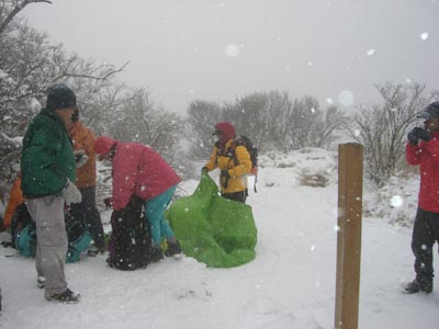 | 肩で昼食 ツエルトが活躍 | これから下山 |