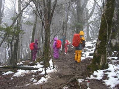 | (有明フェリー6:05)ー高速ー(椎葉谷登山口9:35)ー仏石ーフクジュソウの群落地ー(登山口13:20) 山頂への沢分岐を過ぎて雨が降り出す。仏石からフクジュソウの群生地までズルズルの登山道を登る 元井谷分岐ー山頂ー展望岩ー沢ー登山口の予定でしたが 下りが滑りやすく今回は山頂をあきらめピストンとなりました。 相良村の茶湯里温泉に入る。 |