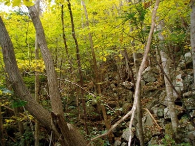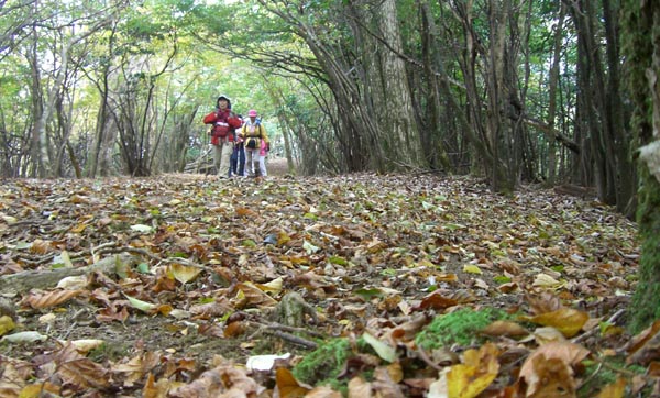 | 屁山山頂近く 黄葉で埋め尽くされた登山道 | |