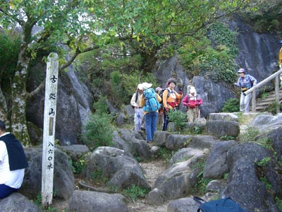 | 苔むした石灰岩の古処山山頂 | 古処山山頂に別れ |
