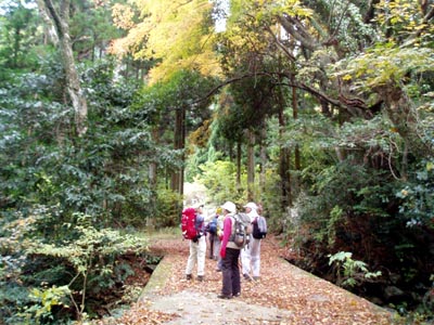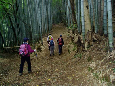 | 穴弘法寺でお茶のお接待を受ける | 凛とした竹林の中を烽火山へ |