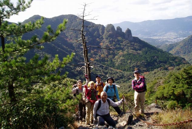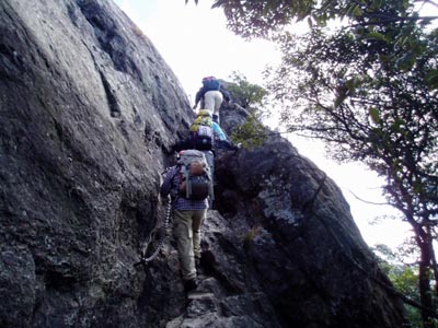 | 天童岩のクサリ場 | 黒髪山頂 休憩中の外人さんに頼んで |