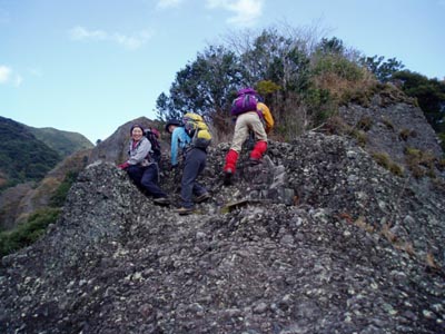 | 青螺山からの黒髪山 | 雌岩から谷を オ〜コワ |