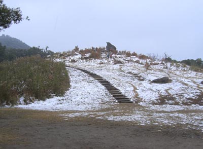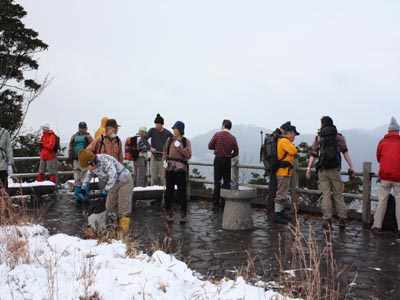 新春恒例長崎南稜山岳会の一般オープン七高山巡り 小雪が舞う寒い日となりました