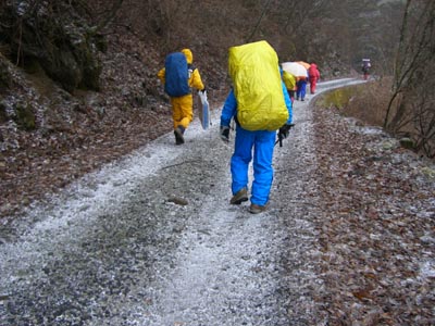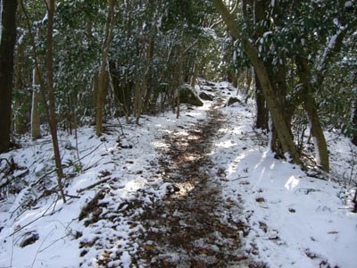 | 吉部登山口を出発 | 粉雪が積もりはじめる |