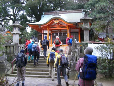 集合場所の諏訪神社一ノ鳥居は 他の会と一緒になり賑やかです 途中妙相寺でリタイアされた方が二人、皆さん約7時間を完歩されました。 |