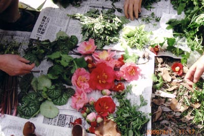 | さくらの里で 本日の収穫物を手に | 収穫した山菜です |