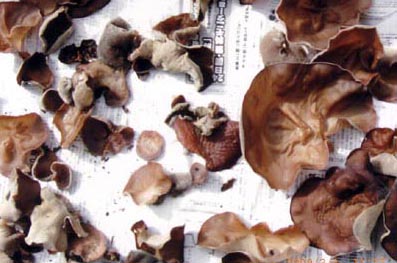| 見つけたキクラゲに皆大喜びです。 | ゲットしたキクラゲ 一番大きいのは手のひら大でした |