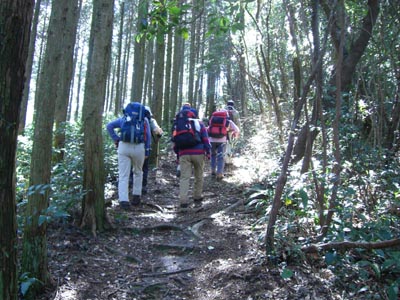 | 峠に出てきました 再びコンパスを当てます | 純心大学の上の方から稜線に出る急登はこたえます |