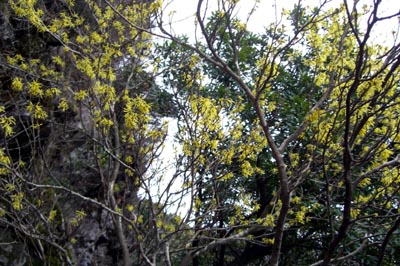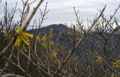 | 笹岳鞍部 経ケ岳が見えます | 笹岳鞍部のマンサク |