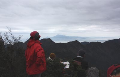 | 経ケ岳山頂から 曇ってはいましたが遠くまで見通せました | |