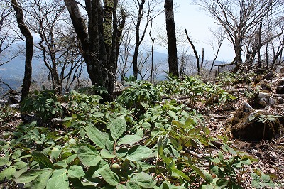 | 南斜面で三分咲きのヤマシャクヤクを撮る | 縦走路は群生しています |