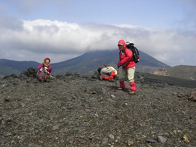 ![]() 中岳山頂まではなんとか 出合った登山者に「新燃岳は強風で吹き飛ばされそうだった」と |
