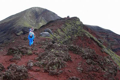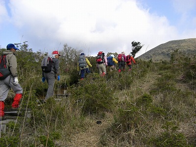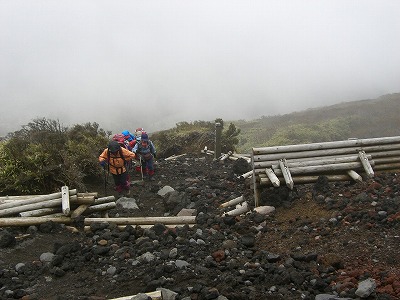 | 細身のKさんが倒れた 後方山頂がガスッている韓国岳 | 韓国岳への最後の急登 |