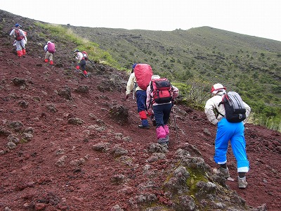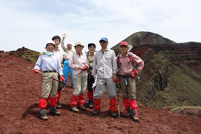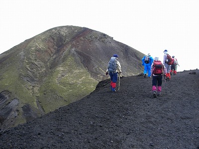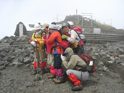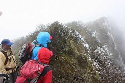 | これから鞍部へ | 高千穂の峰 強風で皆でしがみつきました | |