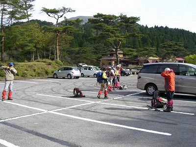 | えびの温泉ホテル前で出発の準備 | 高千穂河原から入山 |