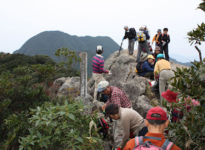 | もうすぐ剣山の山頂 | 山頂の三角点(一等)はしめ縄で囲まれ中には入れません |
