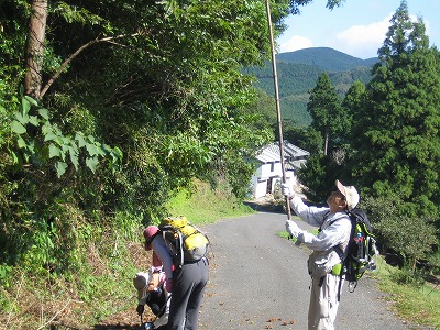 | 笠をひっくり返してむかご取り | |