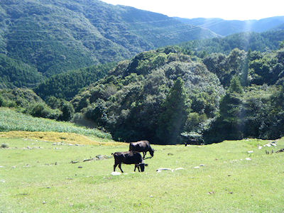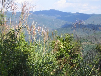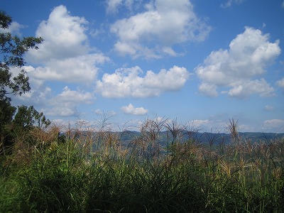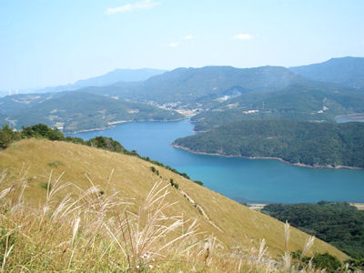 | 大野岳展望台より池島をバックに、反対側は神の浦の山 すすきと秋の雲 | |