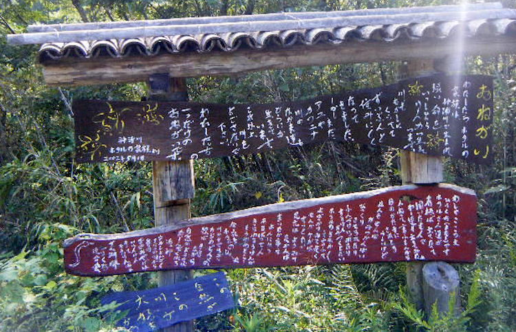 | 神ノ浦ダム上流で面白い看板あり 読めるといいのですが・・・ | |