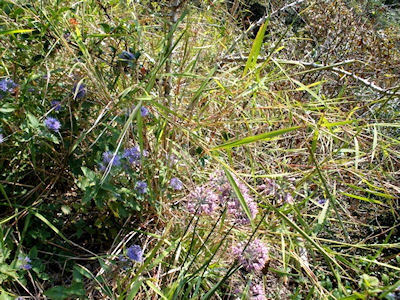 | ダンキクと糸ラッキョウ 山ラッキョウは背丈30〜40C下向きに花を咲かせる ★糸ラッキョウは背丈10Cぐらい | |