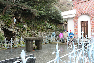 | 井持浦教会 ≪ルルドの聖水の奇跡≫ の水をいただく 「この水でまだ10年は山に登られるよねー」とHarunoさん |