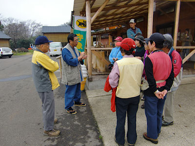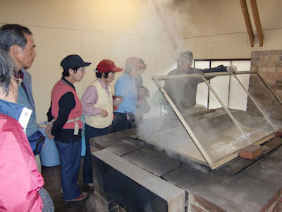 | 海水から 塩作りも 工程の説明を聞く | 大瀬崎灯台をバックに | |