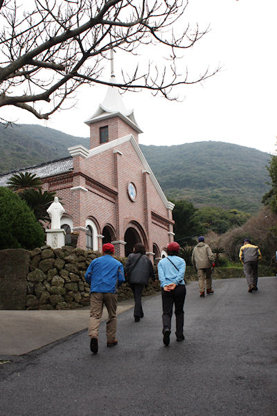 | ★ 参加者 L井川キ 吉田・田中・田中ノ・松尾ア・中原・酒井マ・酒井ミ・久保ヒ・久保ク・井川ノ・ 会員 11名 一般 1名(真由美さん) *コース 1日目 五島観光・ (井持浦教会・椿園・大瀬崎踏台・) 鬼岳・荒川温泉 2日目 七ツ岳〜父ケ岳縦走 五島出身のIgawaさんの案内で1日目は観光と鬼岳 2日目は七つ岳〜父ケ岳縦走、 2年前にもお世話になった民宿のマイクロバスを借り上げ、ぐるりと福江島を案内してくださいました。 全島公園みたいなところで何回行っても「又来よう」と思わずにはいられない島です 民宿では鯛やヒラメの舞い踊り♪♪♪〜 九州商船を通してフェリー・ジェットホイル・民宿のセットでなんと11,500円 Tanakaさんがフェリー乗り場で五島自動車のお偉いさんと偶然出会い、「ぜひお立ち寄りください」とのことで 昼食は 椿茶屋の≪五島うどん≫ ≪椿寿司≫を御馳走になりました ≪椿寿司≫→は商品化されてなくこれから販売の予定で名前は仮の名前です ゆくゆくは≪ココウオーク4階で販売の予定≫ |