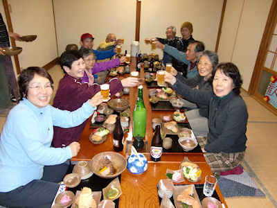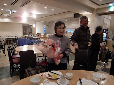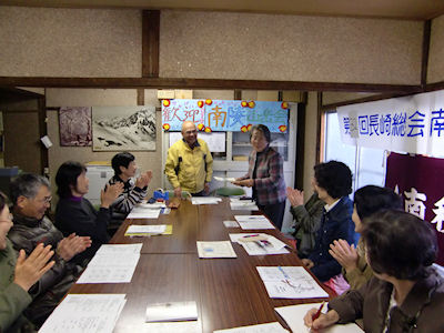 | 県会長のお祝いメッセージをKikumiさんが代読して始まり、その後 総会議事運営がスムーズに運ばれました。 09年度の反省にたち、10年度の会活動があつく語られ、 なかでも山行希望アンケート集計からわかるように、今年度も盛り沢山の山行が組まれるようです その後会場を駅前の・・・に移し食事会 仕事・所用でIgawaさん・Chiekoはここから出席 長年事務局長の仕事をされてきたHarunoさんへ花束贈呈がありました |
