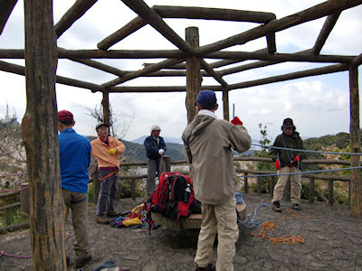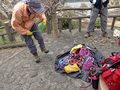 | *稲佐山公園でザイルの使い方と自己確保の仕方 その後権現岩に移動し三点支持で岩場の登り下りを 画像追加 | |