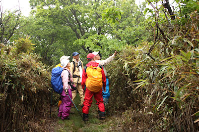 | 障子岳山頂はミヤマキリシマが鮮やかに | オオヤマレンゲを一番に見つけたTanakaさん |