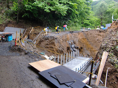 | 林道の中間が工事中で下から歩く 6月いっぱいで完成とか? | ブナ・モミの自然林の中で緑のシャワーを浴びる |