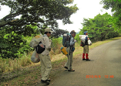 | 振り分け荷物 肩にずっしり でも笑顔です | |