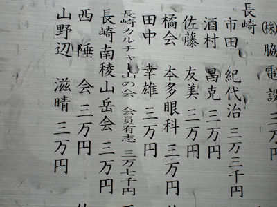 | 金泉寺再興には長崎南稜山岳会からも・・・ 上から2列目の左端 小さい文字で記されています | |