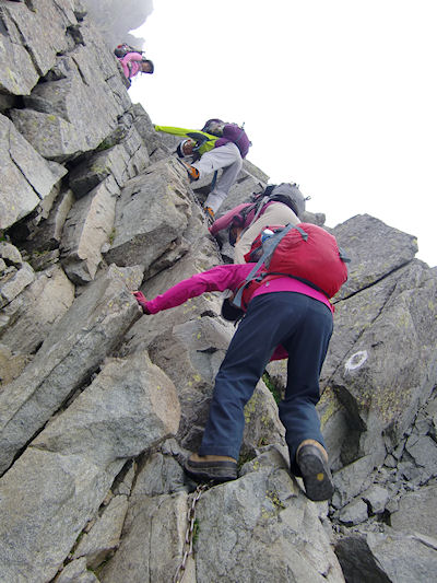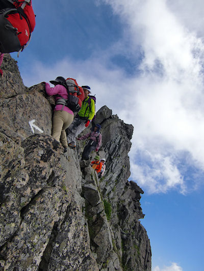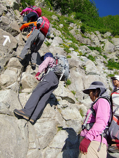 | 北穂からの怖い下り 慎重に下ります | |