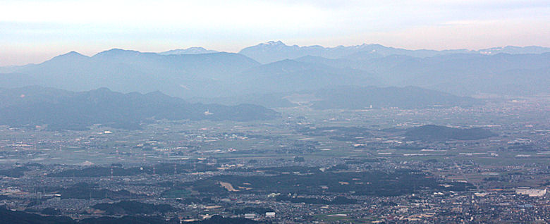 | 九千部山山頂からの展望 久留米市街を見下ろし 阿蘇連山は雪をかぶっています |