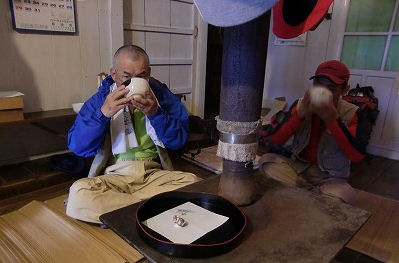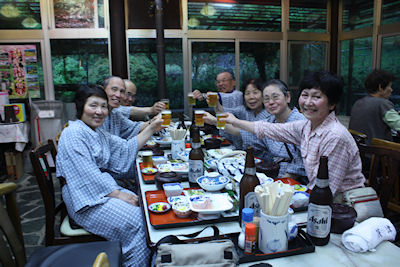 | 10時間の行程 筏津に着きました | 筏津山荘で乾杯 |