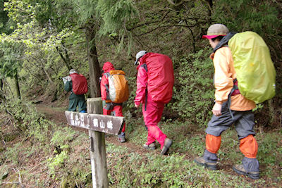 | 出発時は降らなかったが | すぐにガスって 岩場を慎重に |