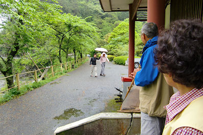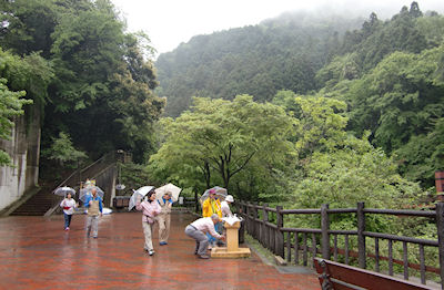 | 早朝 Tanakaさんは乗合タクシーで日浦登山口まで 御苦労さんと走って迎えるKikumiさん |