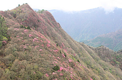 銅山越からは西赤石山斜面いっぱいピンクに染まったアケボノツツジに感嘆の声があがる。
