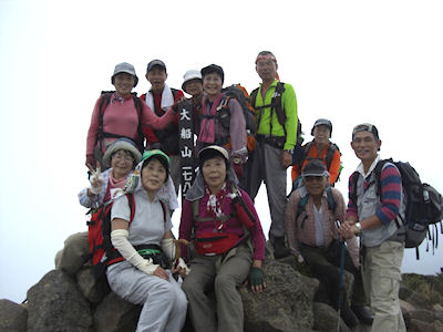 頂上にて (道中が長かった=4時間分みんなの笑顔がいいこと)