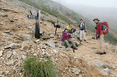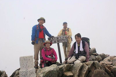 | ガスってきました | 蝶槍山頂 三角点にタッチ |