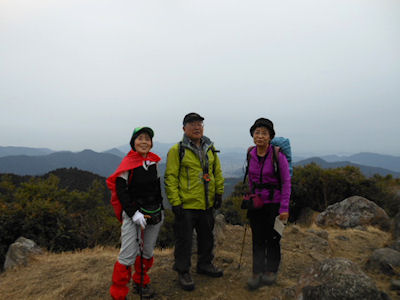 | ★ コース・その他 曇りのち雨 16℃ 松本さんから画像・コメント・感想が送られてきました 長崎駅発(9:25)=JR=浦上(9:28)=現川着(9:38)発(9:40)---産業廃棄物場横(10:26)) ---帆場岳手前ピーク(494m)(11:00)---帆場岳山頂(506m)着(11:15)〜昼食〜発(11:40) 純心大学前バス停着(12:23)発(12:51)==バス==岩屋橋バス停着(13:10) |