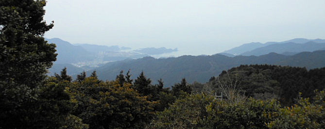 | 帆場岳山頂からの長崎港、女神大橋がかすんで見える | |