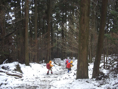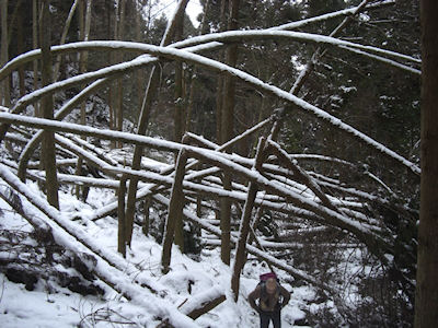 | 奉弊殿への登り | 雪の重みで倒木が |