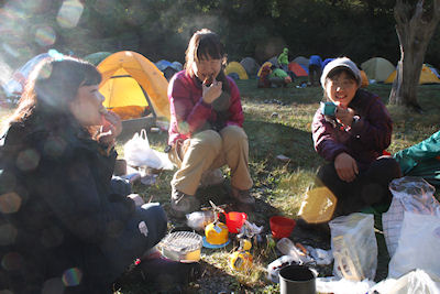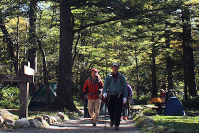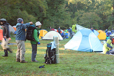 | 徳沢園のテント場は出発のためのいろいろな模様が見られます | |